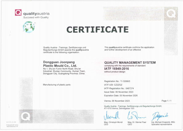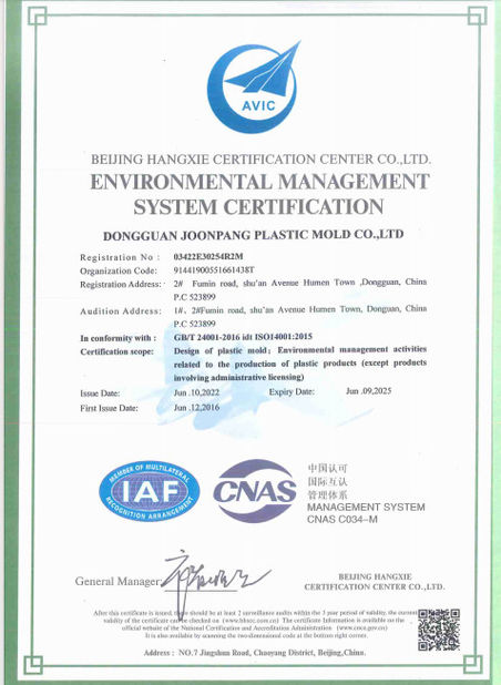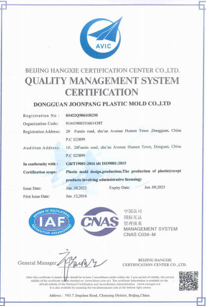 • Китай Dongguan JoonPang Plastic Mold Co., Ltd. Сертификации